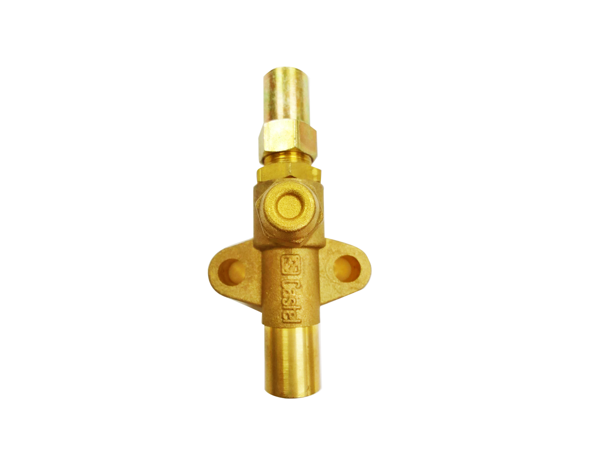 Flang shut off Valve, Outlet Flare Jointed 1/2" SAE.with in Access Valve Flare 1/4" SAE.